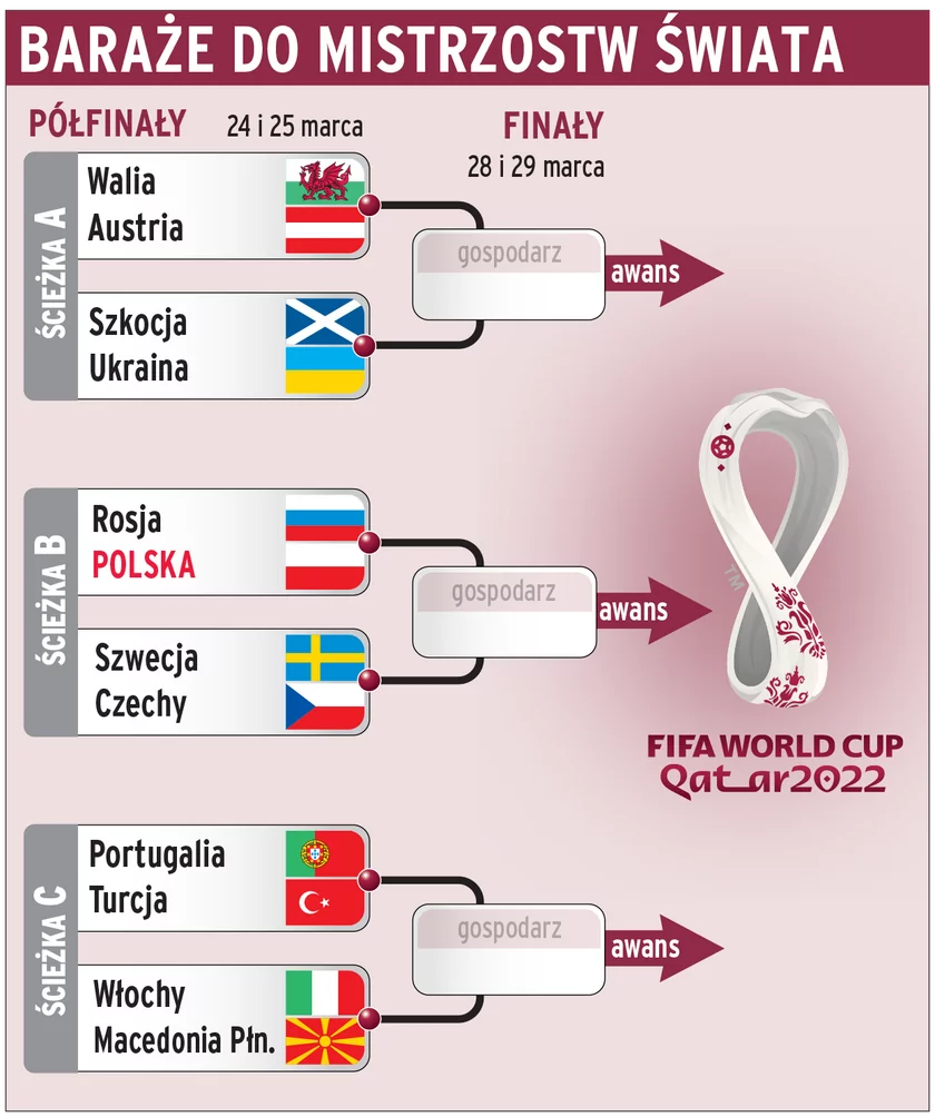 Baraże o MŚ 2022: Polska zagra z Rosją w barażach o awans na MŚ