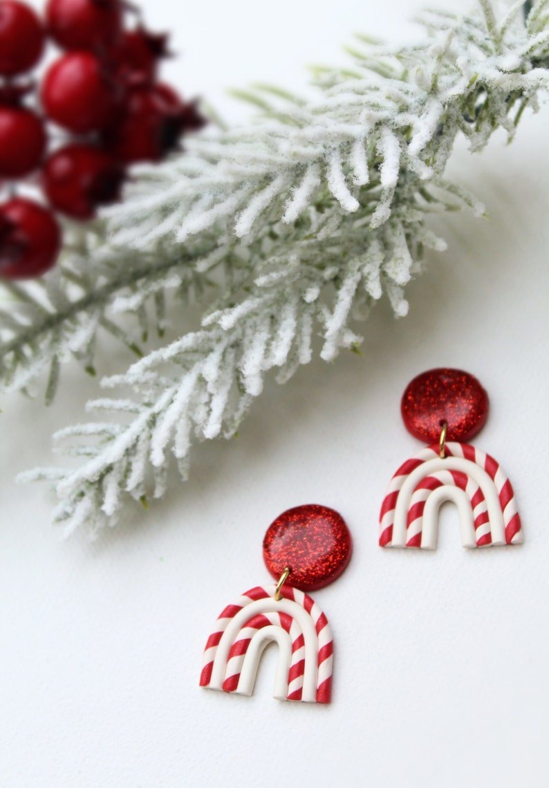 Rainbow Earrings, Polymer Clay Earrings, Candy Cane, Christmas